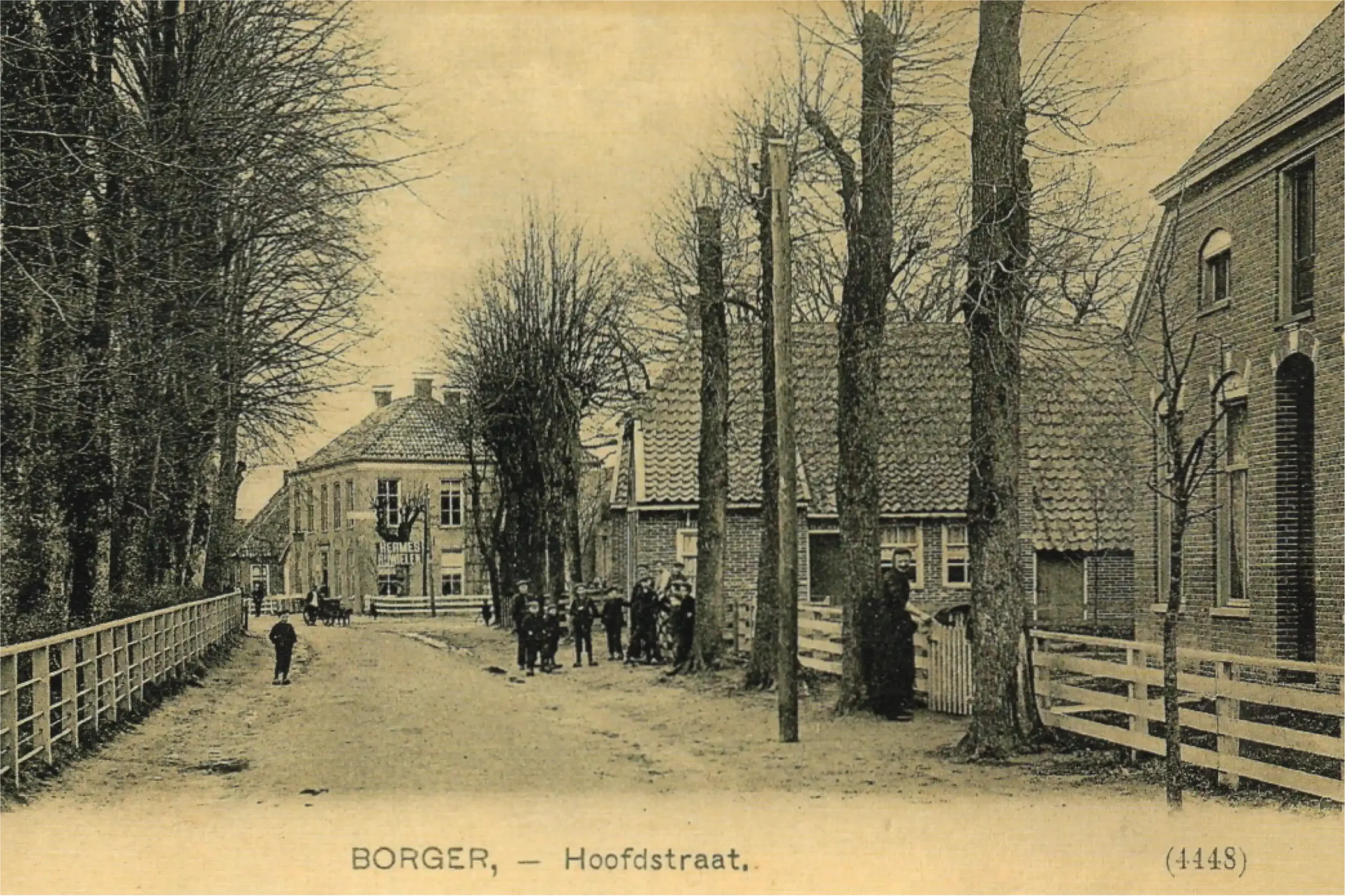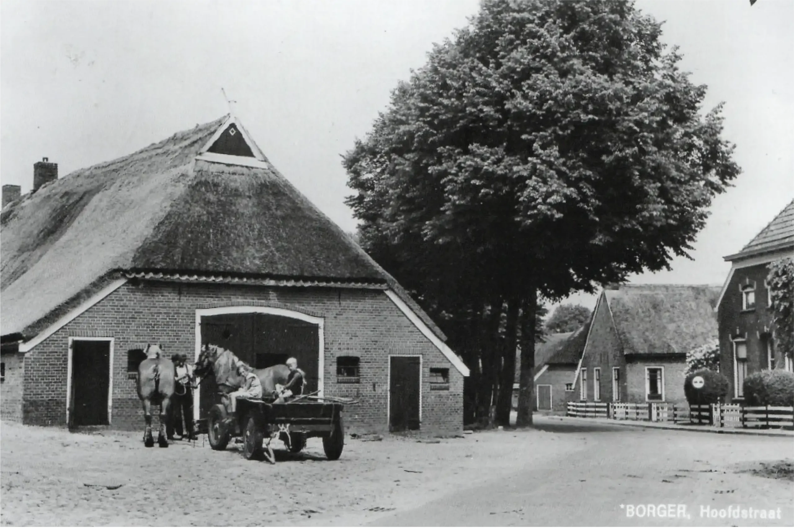 De boerderij van Vedelaar aan de Hoofdstraat 8 in Borger. Later zat hier de STIP en tegenwoordig woont hier B. Oudegeest.