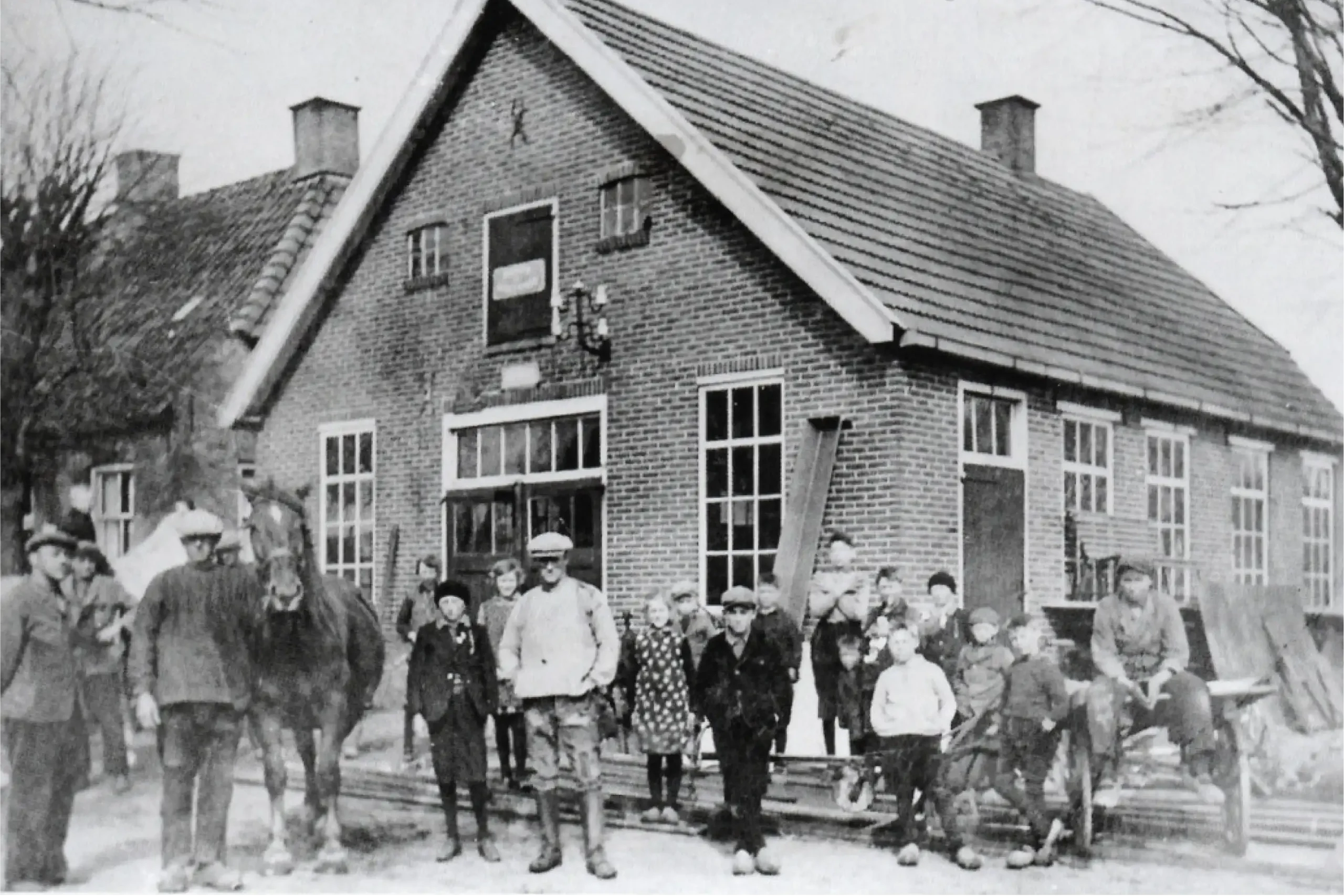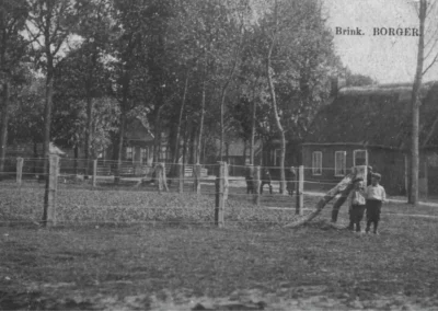 Links de boerderij van de familie Rossingh. Willem Rossingh (1896-1946) is in de jaren twintig en dertig van de vorige eeuw bevoegd om rijexamens af te nemen. Volgens de verhalen moest de kandidaat een paar rondjes over de brink rijden. Deze is geslaagd, als er dan geen brokken zijn gemaakt. Dezelfde Willem doet in 1925 als wedstrijdrijder mee aan de eerste TT.