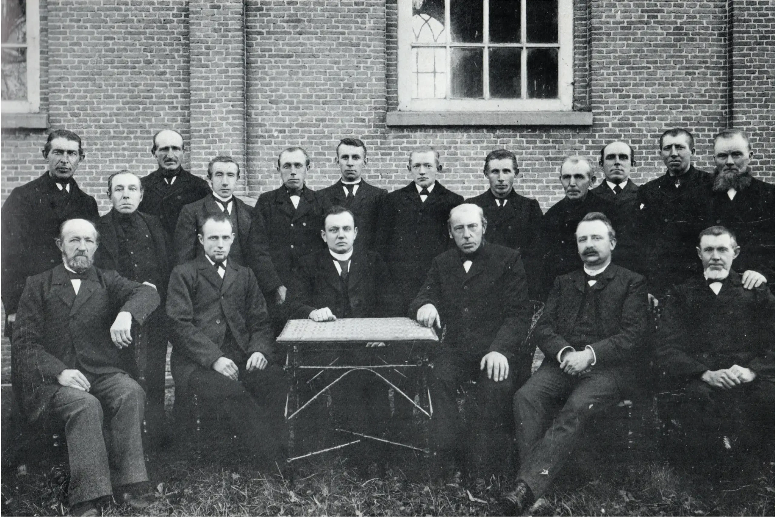 Bovenste rij v.l.n.r. 4e Hms. Nijenhuis Zittend 2e van links Henderikus Pott en 5e van links dr. Jan Frima. Zie verder boekje ‘Kent u ze nog… de Borgerders’