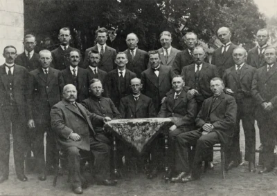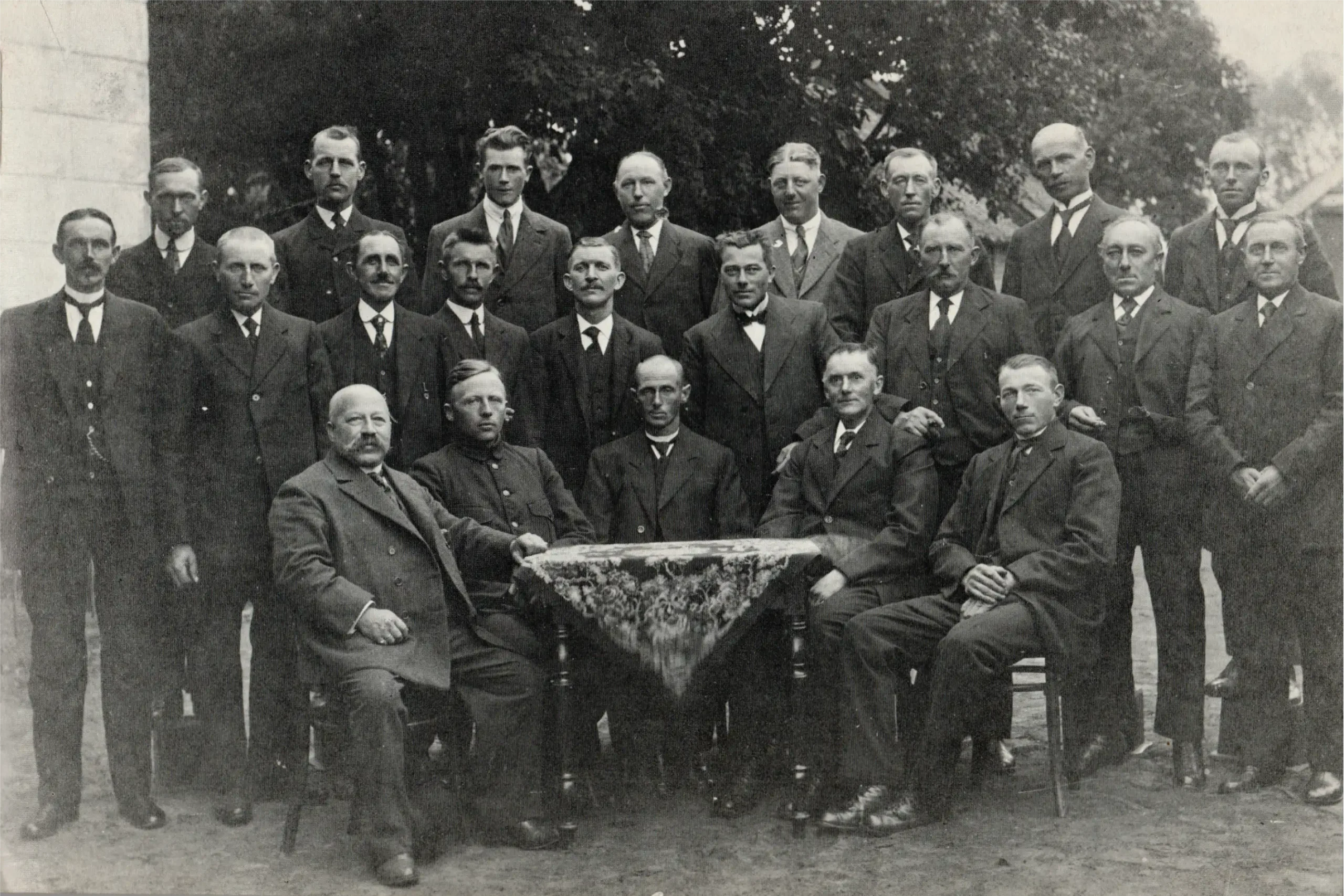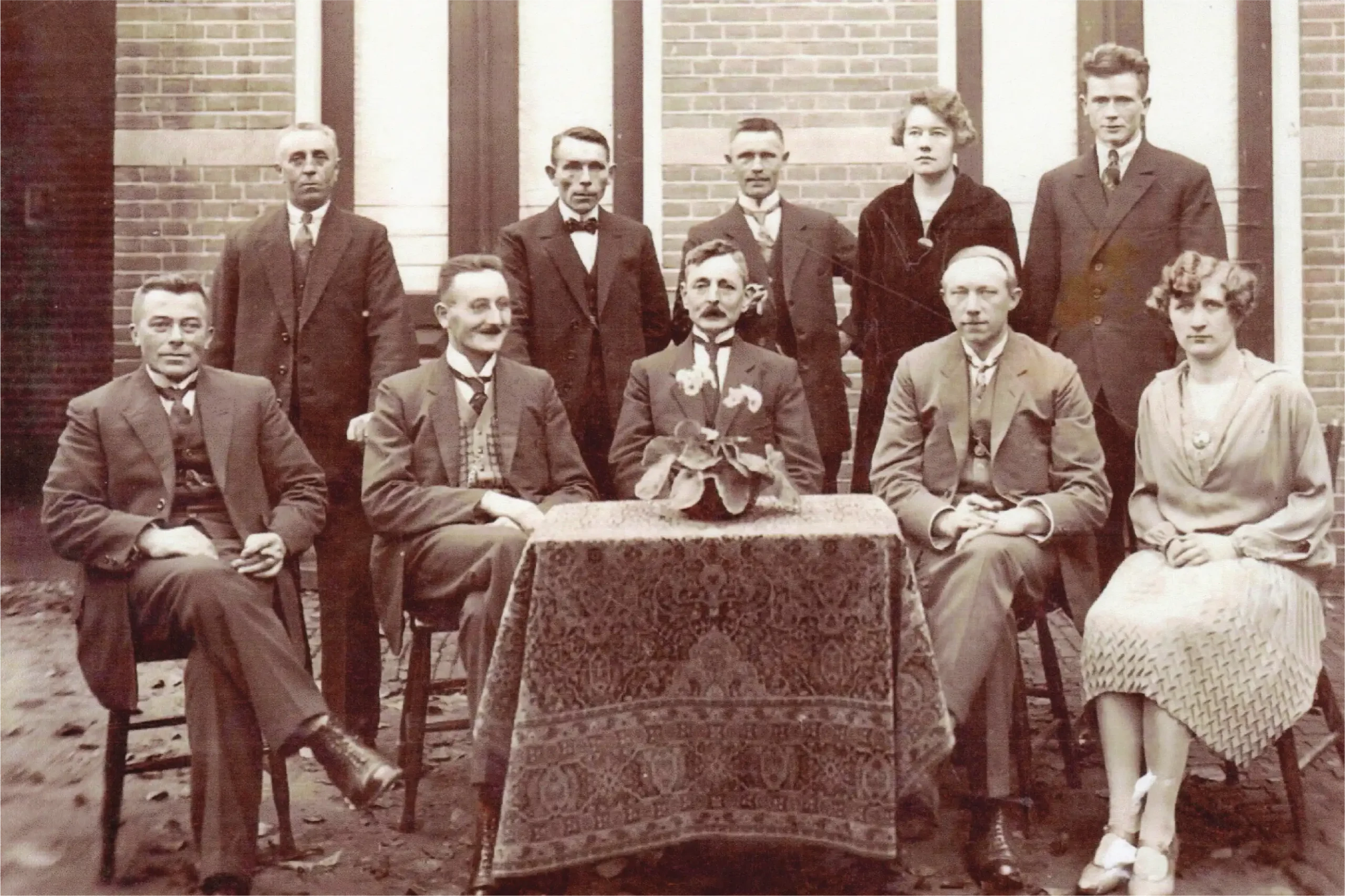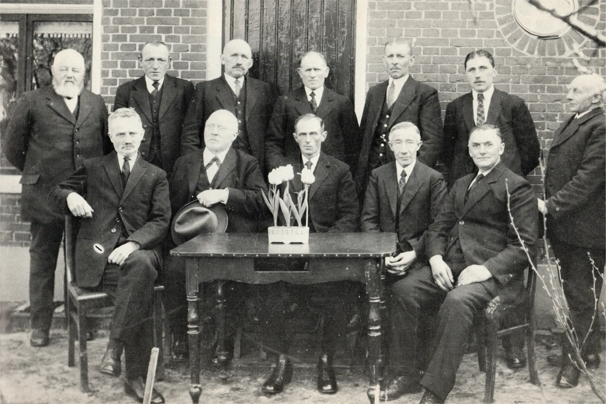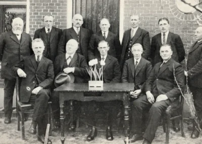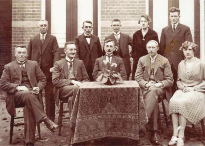 Bovenste rij 2e van links Hms. Oostingh. Zittend geheel links H. Pott (kassier van de bank), in het midden (3e) J. Berends, dan Hm. Nijenhuis en dan J. Kroeze. Zie verdere omschrijving in het boekje ‘Kent u ze nog… de Borgerders’.