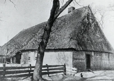 Boerderij aan de Hunebedstraat 2c van Strating welke werd verhuurd aan het gezin van Jan Blom. Dit is in de bouwtrant van 1790 en de foto werd genomen in 1909.