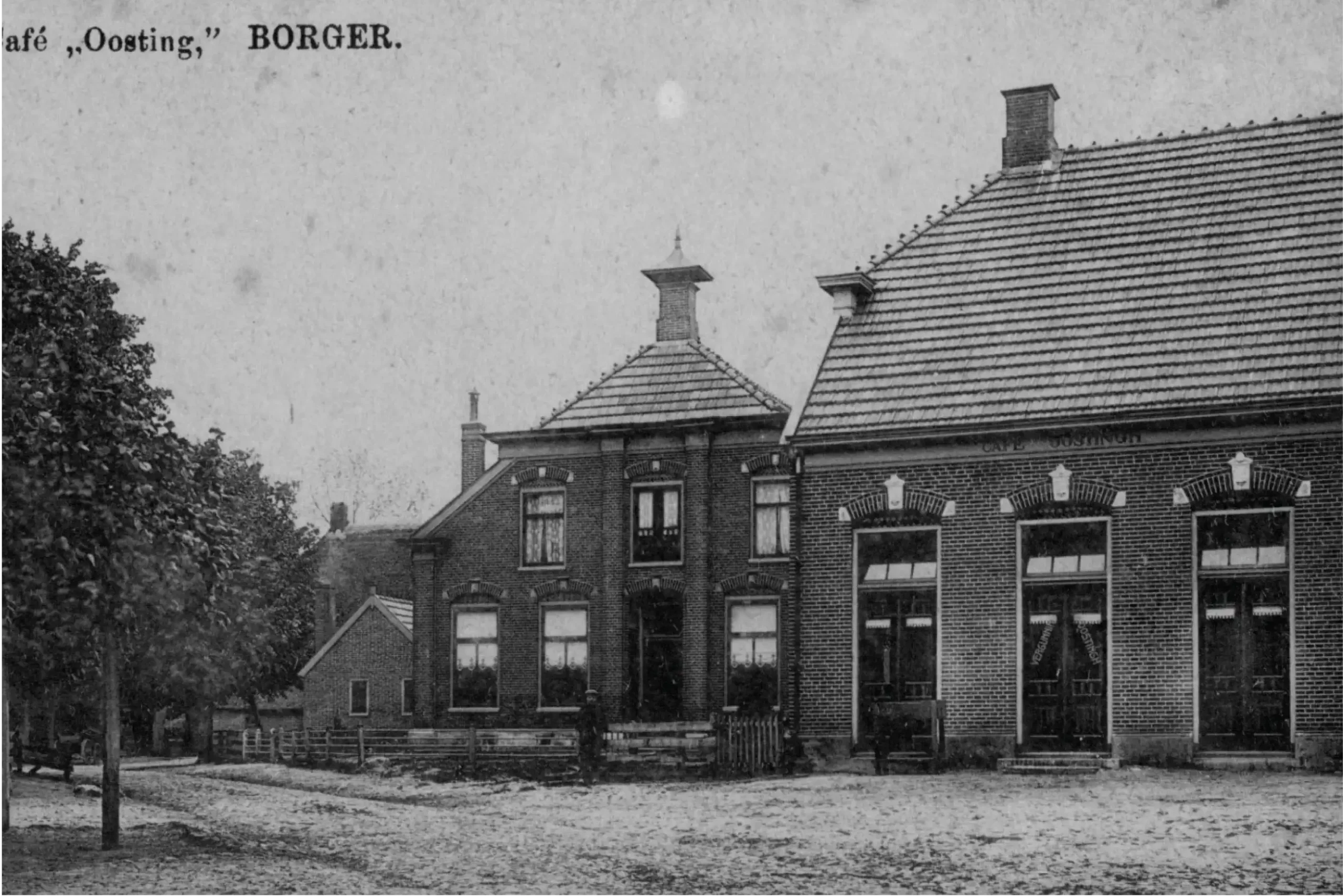 De doktersvilla, afgebroken in 1962 en door nieuwbouw vervangen. In april 1894 vestigt Jan Frima zich hier als huisarts. Rond de eeuwwisseling is hij zeer actief in het culturele en politieke leven in Borger en Drenthe. Frima wordt opgevold door dr. Duursma.