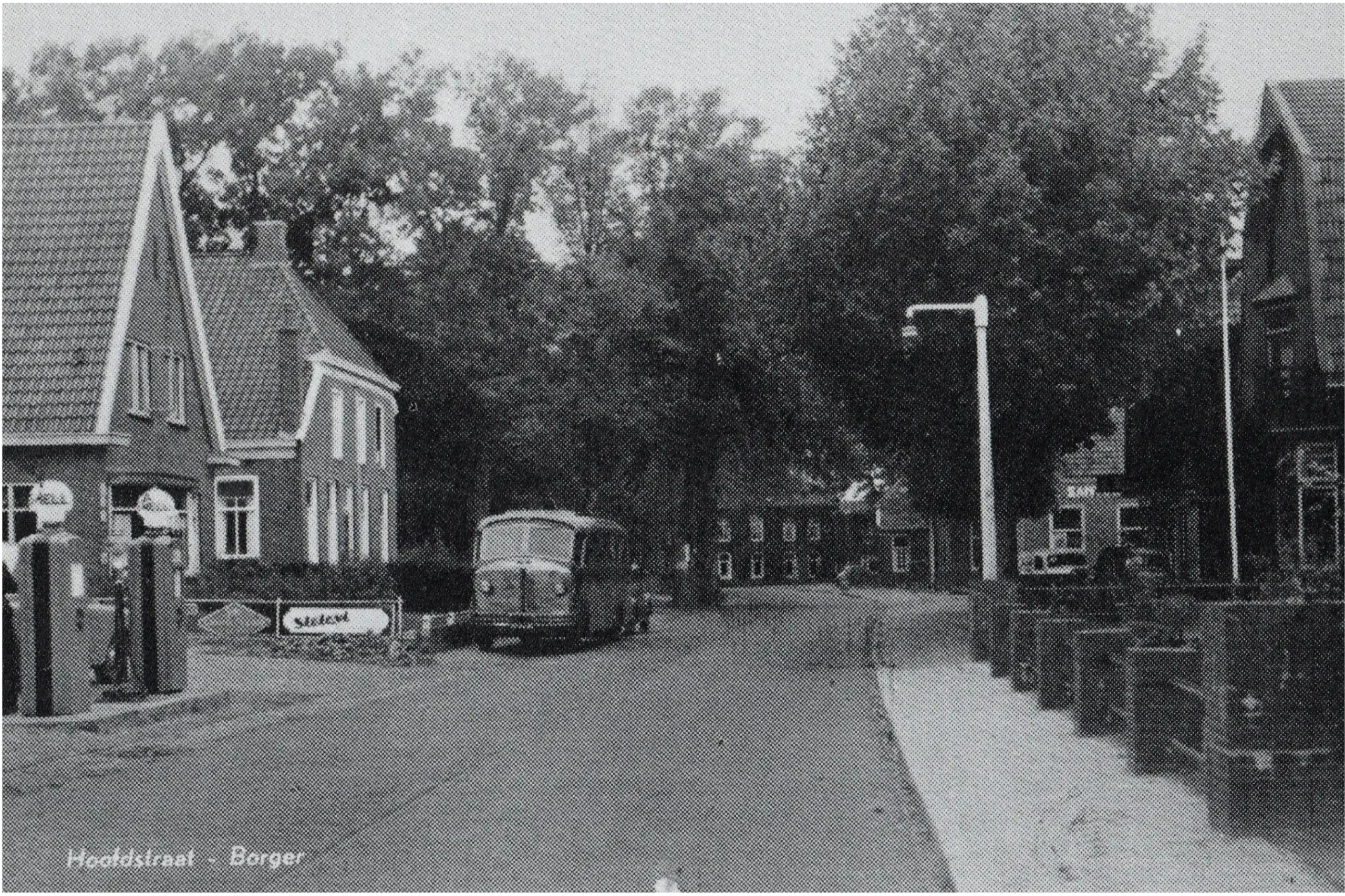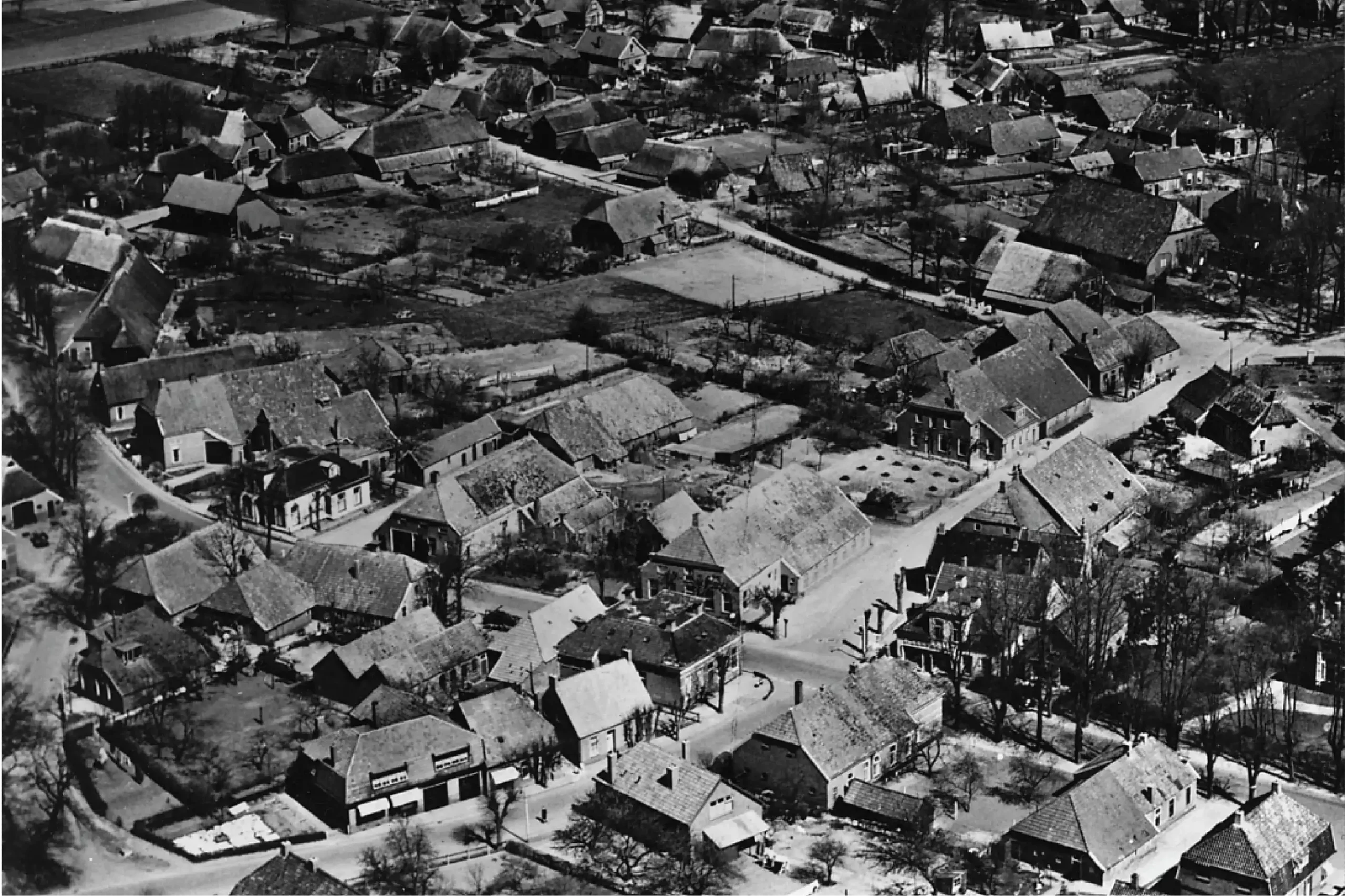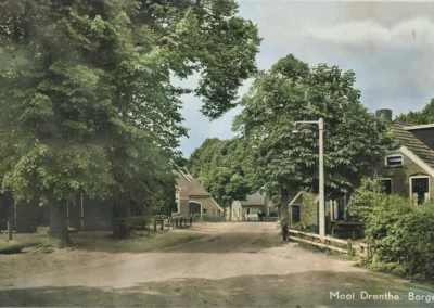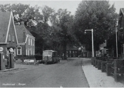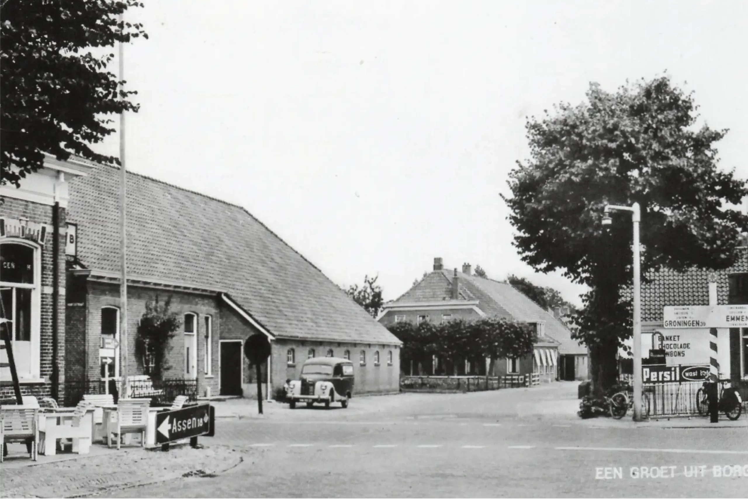 Geheel links de boerderij van Hamming en daarnaast café ’t Witte Paard van de familie Santing. Beide werden afgebroken in verband met de aanleg van de snelweg door Borger.
