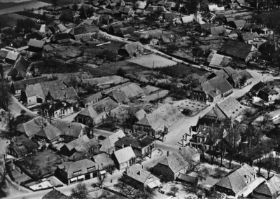 Middenop zien we de boerderij van Berens, met daarachter W. Hooiveld en rechsboven de boerderij van H. Takens en W. Rossingh. Naast Berends de boerderij van Sibring, de pastorie en boerderij van H. Hooiveld.